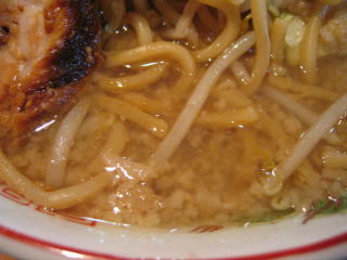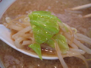 モヤシ山盛り背油入りの醤油ラーメンです。