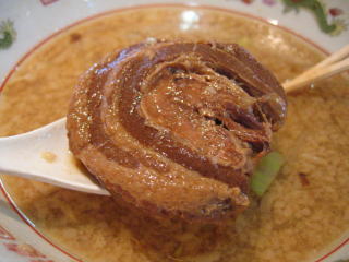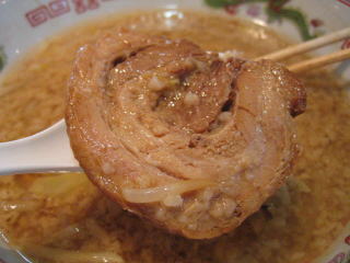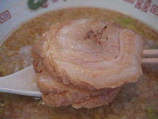 トロトロのチャーシュー2枚、1枚は端っこでこれはこれでパリパリで美味しい。