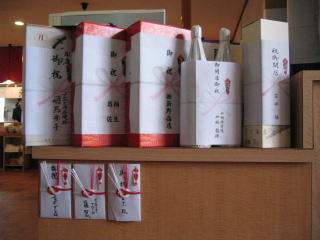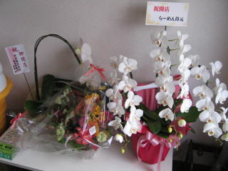 玄関室右には開店お祝いの胡蝶蘭などがありました。
