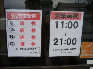 令和2年9月22日(火・祝)のお昼夕方 長岡市の「ラーメンのろし」さんにお邪魔しました。