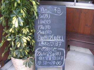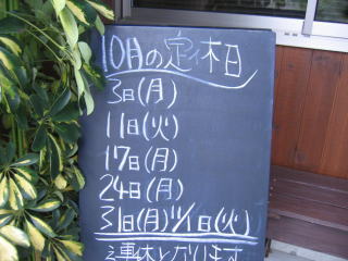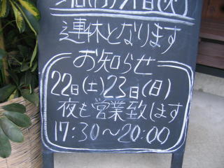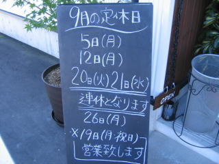 9月19日(祝・月は)営業し、9月20日(火)、21(水)は連休です、ご注意ください。