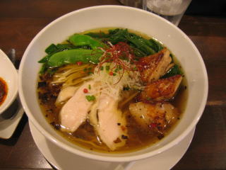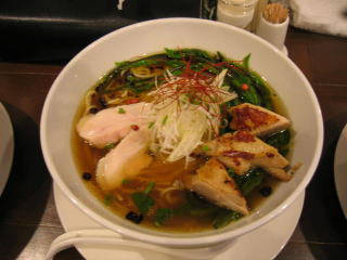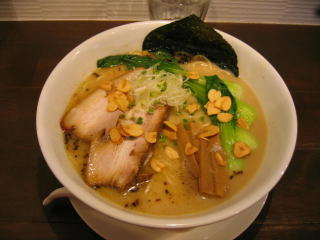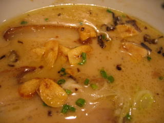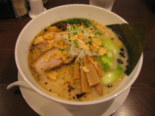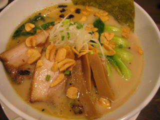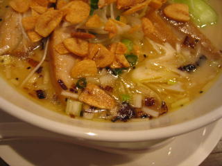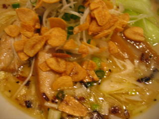 先に「白湯スープ塩白湯麺」ニンニクチップ多目と「白湯スープ塩白湯麺」が来ました。