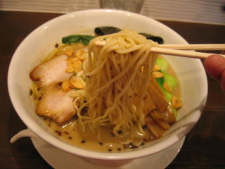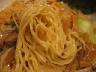 麺は中太麺、手もみ風の縮れ麺です。