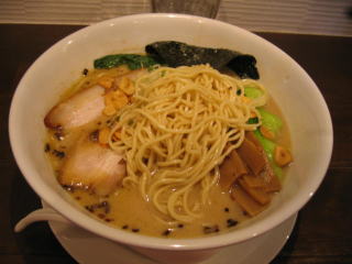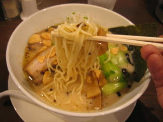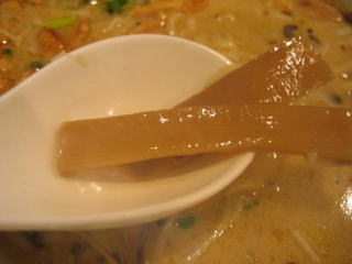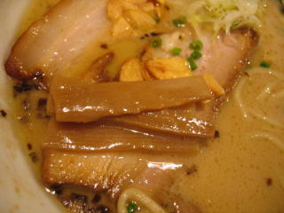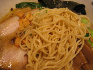 スープはかなり濃厚な、塩とんこつスープといった印象です。