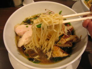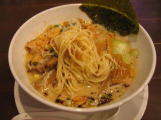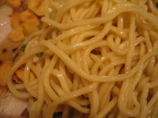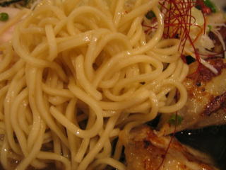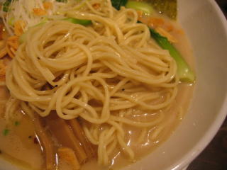 まず「白湯スープ塩白湯麺」、麺は中太麺でほぼストレートです。