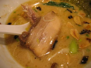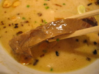 湯気でちょっと曇っていますが、崩れそうなトロトロの、柔らかなチャーシューが美味しい。