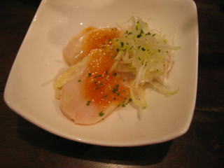 ネギはシャキシャキ、オレンジ色のドレッシングがかかっています。