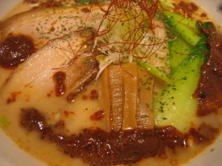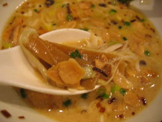 今夜は夜のみの限定「白湯スープ 蝦白湯麺」、蝦醤がたっぷりかかってとても美味しそうです。