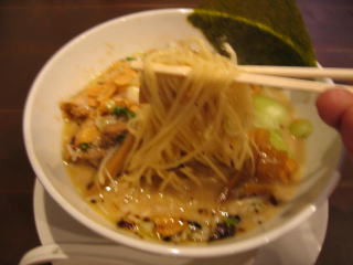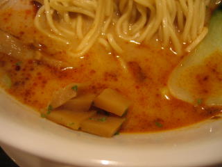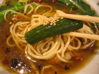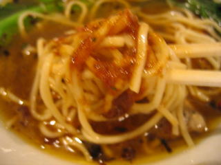縮れ麺がスープと良く絡みます。