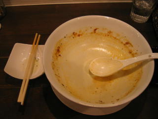 美味しい豚骨スープも全部いただきました、隣の席の若いお兄さんがスープをほとんど残して帰っていきましたが、もったいない!と思いました。
