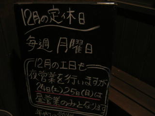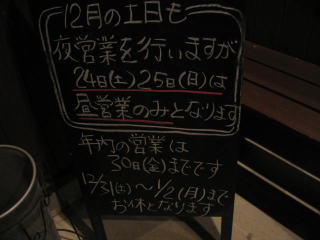 「12月の土日も夜営業を行いますが24(土)25日(日)は昼営業のみとなります」