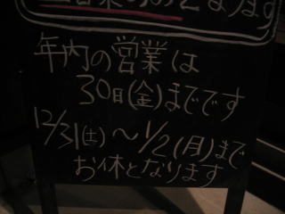 「年内の営業は30日(金)までです。12月31日(土)〜1月2日(月)までお休みとなります」