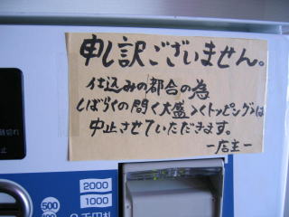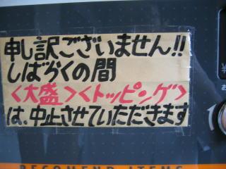 しばらくは「大盛」と「トッピング」はお休みの様です。