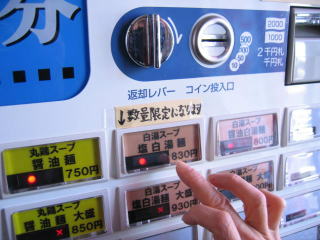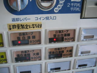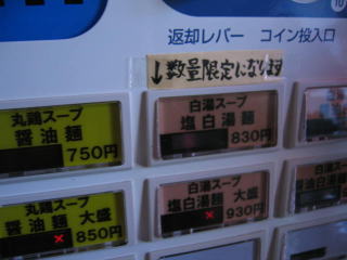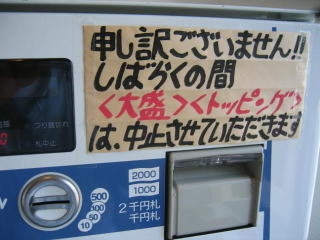 各種大盛には売切れランプが点灯しています。