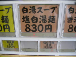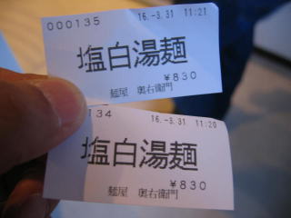 今日は「白湯スープ塩白湯麺」830円を2つです。