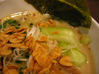 海苔、青梗菜、炙りチャーシュ―、シナチクなどが載っています。