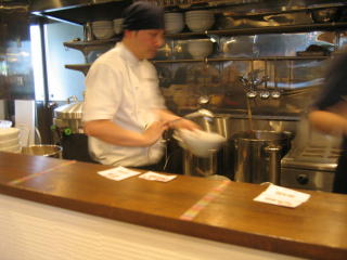 今日は「白湯スープ塩白湯麺」が突然大盛に、幻の一杯です、「まだ味がぶれているかもしれないなので味を濃くしたり、薄めたり言ってください。」とのことです。