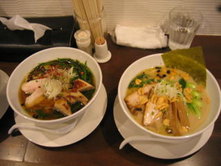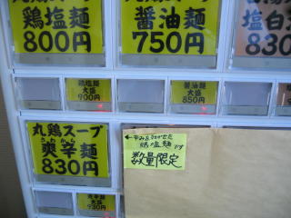 今日は2人で「白湯スープ塩白湯麺」830円2杯と「丸鶏スープ爽辛麺」830円を1杯の予定です。