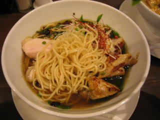 後半、蝦七味を溶かし込んでちょっと辛めの「白湯スープ塩白湯麺」をいただきます。