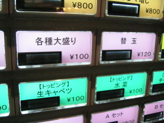 各種大盛100円、替玉120円です、違いを女性店員さんに聞きましたら、替玉の方が量が多いそうです。