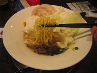 大きなキャベツと薄い豚バラ肉のチャーシューが目を引きます。