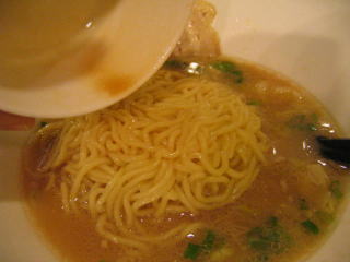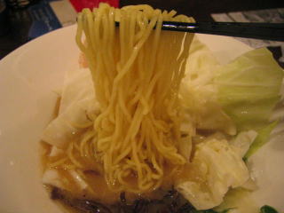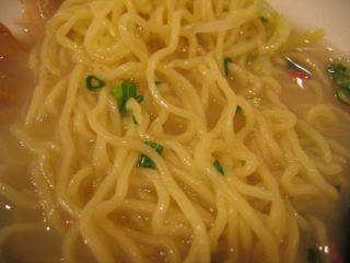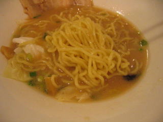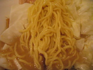麺は中太麺で縮れ麺です、ちょっと湯きりが甘い感じがします。