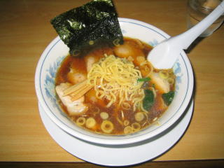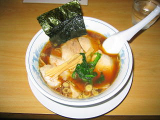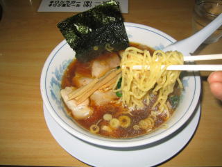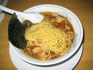 背脂系ではない、生姜の香りがわずかにする濃い色のアッサリ醤油ラーメン、飲んだ後にピッタリかも知れません。