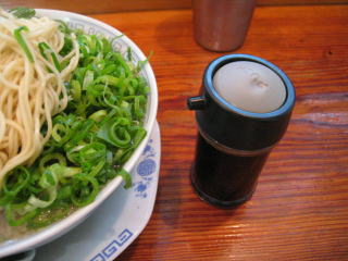 手前のカウンター席に座り、「京都ネギバカ醤油らーめん」狙いできましたので、それを大盛で頼みました。