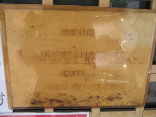 日焼けして見えづらいですが、「営業時間11時30分から14時くらい。」
