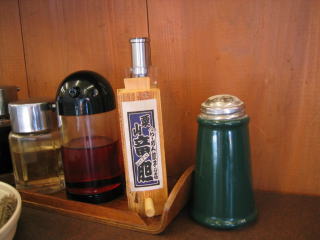テーブルにはメニューとトウガラシ、ブラックペッパーもありました。