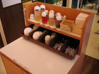 薬味などは1カ所にあってセルフ、焼そばの濃いソースと柚子胡椒を小皿にいただきました。