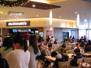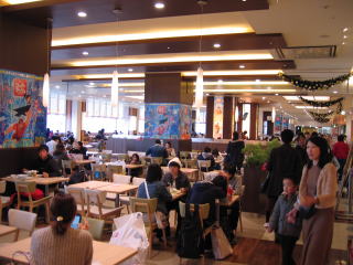 広大なフードコート、奥が見えません。