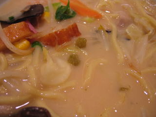 野菜等の具材たっぷり、スープは白濁して濃厚そうです。