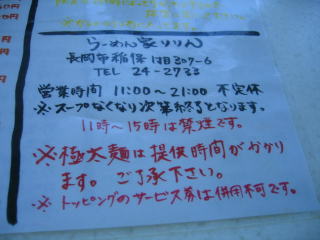 平成25年3月17日(日)のお昼、長岡市の「らーめん家 りりん」さんにお邪魔しました。