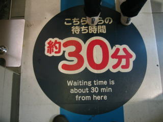 地面に書いてあります「待ち時間約30分」です。
