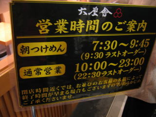 営業時間は「朝つけめん」午前7時30分からです。