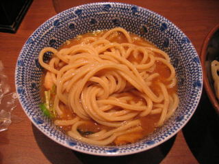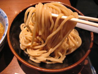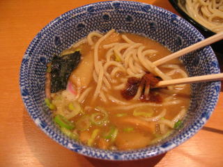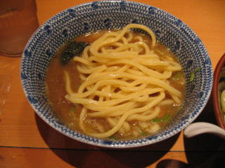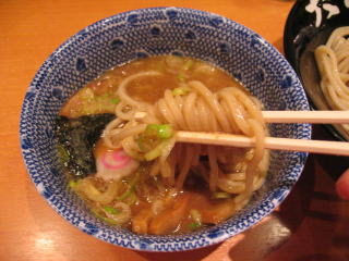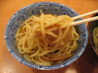 甘じょっぱいつけダレにたっぷり太麺を浸していただきます。