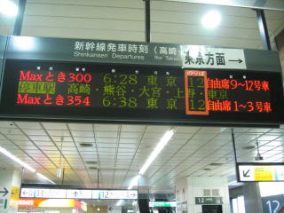 日曜日の始発新幹線の自由席は1〜4号車です。