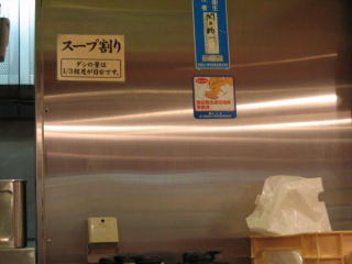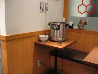 入口左手、券売機の後ろにスープ割のお釜と柚子があります。