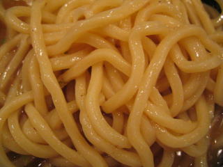 麺はコシの強い、歯ごたえたっぷりの太麺です。