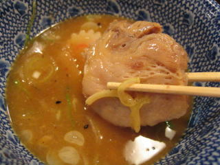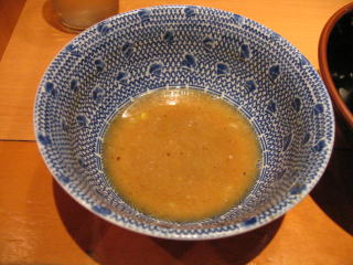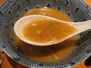 甘じょっぱいスープに柚子粉末と割スープを入れて、スープを半分ほどいただきました。