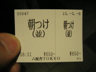 さすが東京、隣のお客さんと肘が触れ合う狭さです、地価や家賃が高いのでしょう、仕方がありません。