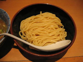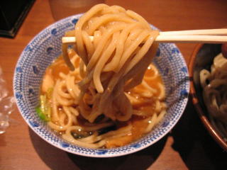 太い麺をつけだれに良くつけていただきます。