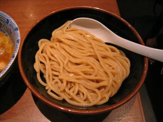 午前9時、カウンター席に座り、2〜3分で「朝つけめん」普通盛りがきました。