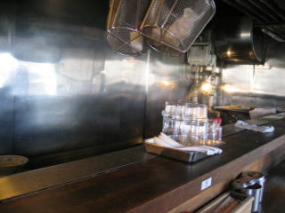 カウンター前の厨房も奥行きが狭そうです。