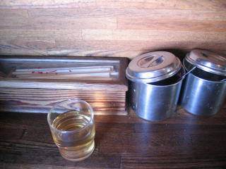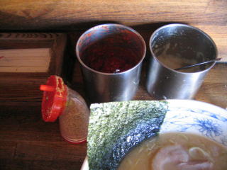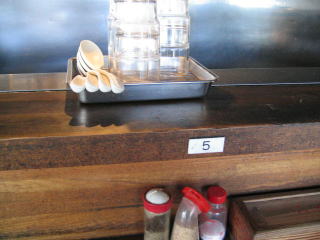 もちろんお水(多分麦茶)はセルフでカウンター上の大きなポットから自分で入れます。