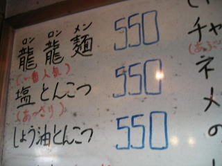 一番人気と書いてある龍龍麺(ロンロンメン)550円の大盛100円を頼みます。