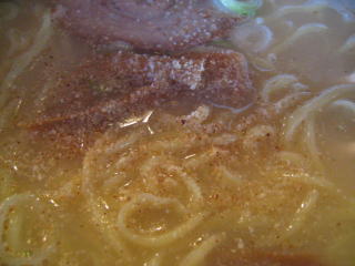 塩とんこつはスープは白目でスープには油がほとんどなく、あっさり目です。