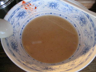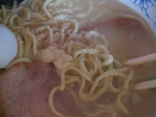 濃厚で少し油の浮いたスープです。