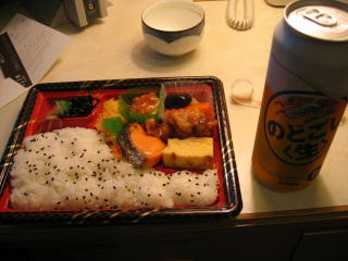近所で買ったコンビニ弁当とお酒。